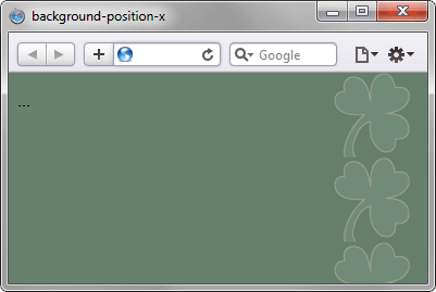 Задает положение фона в любых доступных для CSS единицах — пикселы (px), сантиметры (cm), em и др. относительно левого края элемента.