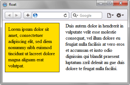 Определяет, по какой стороне будет выравниваться элемент, при этом остальные элементы будут обтекать его с других сторон. Когда значение свойства float равно none, элемент выводится на странице как обычно, при этом допускается, что одна строка обтекающего текста может быть на той же линии, что и сам элемент.
