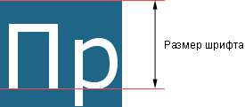 Сам размер шрифта определяется как высота от базовой линии до верхней границы кегельной площадки, как показано на рис. 1.