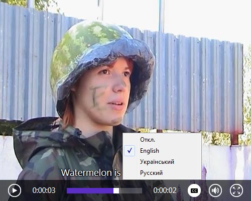 Наилучшую поддержку показывает браузер IE, который позволяет переключать язык субтитров и корректно отображает их (рис. 1).